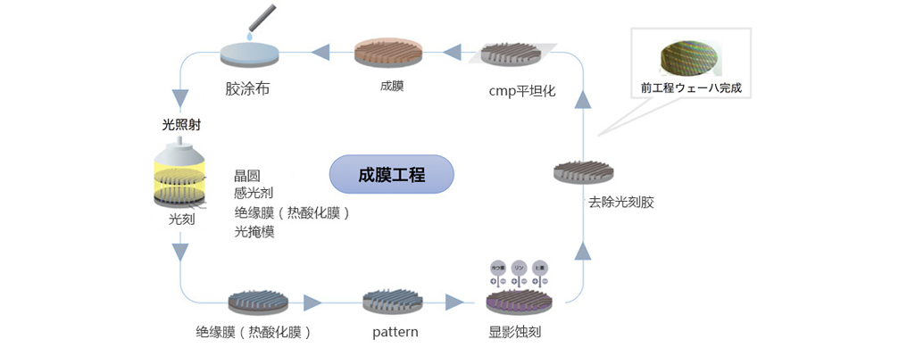 熱酸化后,涂布光刻膠,然后經(jīng)過(guò)曝光?顯影、蝕刻、清洗、CMP工程形成pattern。