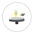 接下來是“晶體生長”。在這里,我們在晶圓上制作用于發(fā)光作為LED的薄膜。頂部是過程的俯視圖,底部是橫截面。在晶片周圍的高溫高壓環(huán)境下吹入氣體,并通過化學(xué)反應(yīng)在晶片表面上沉積形成薄膜。這樣重復(fù)多次以制作多層薄膜結(jié)構(gòu)。